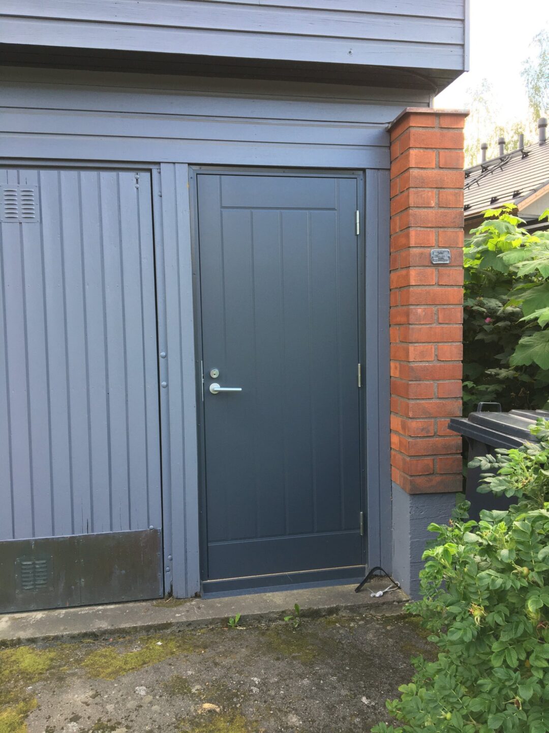 Ovilehden pinta on säänkestävää HDF-levyä, jäykisteenä alumiinilevy. Reunalla kiertää liimapuu. Kokonaisvahvuus 62mm. Muotoiltu tiiviste ovilehdessä. Eristeenä toimii polystyreeni. Karmi maalattua mäntyä. Kynnys koivua.